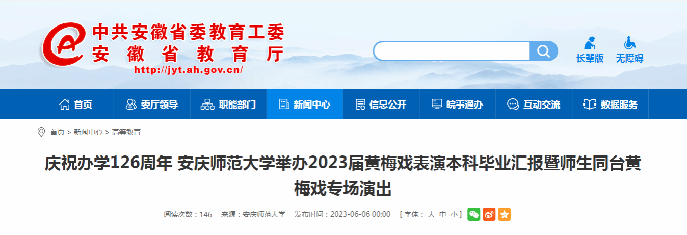 本次毕业汇报演出和师生同台黄梅戏专场演出是教学实践周重要内容,展现了beat365英国官方网站国家级一流本科黄梅戏表演专业的教学成果,也是庆祝beat365英国官方网站办学126周年系列活动的一项重要内容。( 杨米奇 特约通讯员:江伟 )