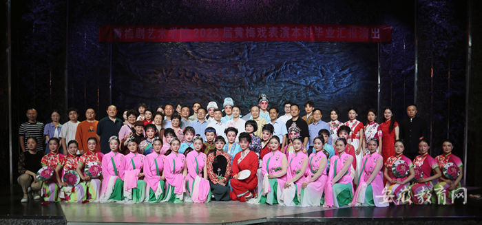 2023届黄梅戏表演本科毕业汇报演出集中展示了2023届黄梅戏表演本科专业学生四年来的学习成果,为观众呈现了风格多样的黄梅戏作品,如风趣幽默的经典小戏《打豆腐》、哀怨悱恻的折子戏《斩娥》、经久不衰的经典唱段《到底人间欢乐多》等。师生同台黄梅戏专场演出中,文戏与武戏、传统戏与现代戏、教师示范与学生扮演轮番上场,精彩纷呈,充分展现了师生扎实的基本功、婉转动听的唱腔,细腻动人的舞台表演艺术。