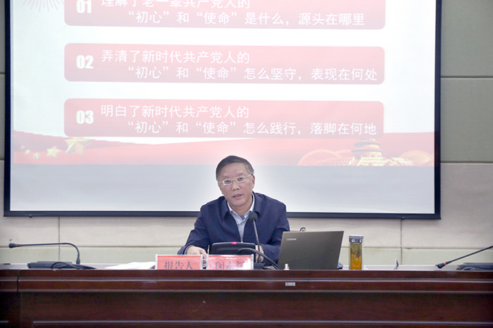 闵永新在党课中结合主题教育开展以来自己的学习、调研和思考,深入解读了开展“不忘初心,牢记使命”主题教育的重大意义,深邃剖析了中国共产党初心和使命的丰富内涵,深情回顾了98来中国共产党践行初心使命的光辉历程和丰功伟绩,深刻分析了当前学校发展面临的形势挑战,重点分享了三个方面的学习收获:理解了老一辈共产党人的“初心”和“使命”是什么,源头在哪里;弄清了新时代共产党人的“初心”和“使命”怎么坚守,表现在何处;明白了新时代共产党人的“初心”和“使命”怎么践行,落脚在何地。