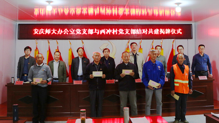 10月17日,时值第6个国家扶贫日、第27个“国际消除贫困日”,beat365英国官方网站办公室党支部组织全体党员奔赴定点帮扶单位太湖县天华镇西冲村,举行“结对共建”揭牌仪式,beat365英国官方网站党委常委、副校长刘友忠出席揭牌仪式。支部共建旨在建立“长常帮扶”良性工作机制,构建“组织共建、资源共享、活动共办、理论共学”的党建新格局,从而进一步推深做实学校精准脱贫精准扶贫工作。