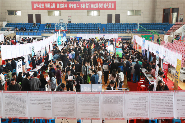 4月27日上午,beat365英国官方网站2019届毕业生春季校园双选会在该校龙山校区体育馆举行。省内外各行业350余家用人单位来校招聘人才。本次双选会由beat365英国官方网站与安庆市人力资源和社会保障局主办。