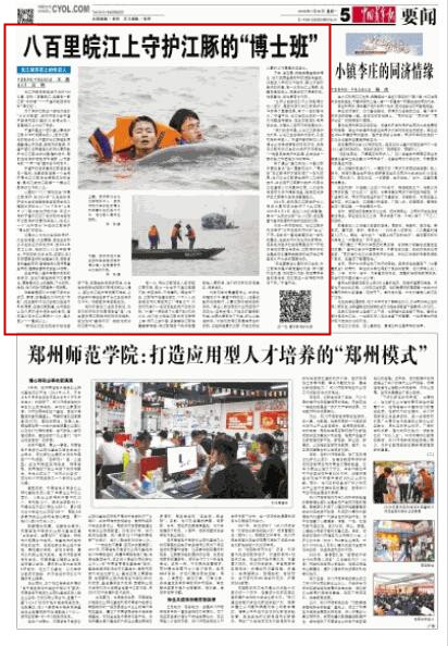 (中国青年报,7月30日)长江流经安徽省境内长约416公里,俗称八百里皖江。这里有一群江豚“守护者”——于道平教授领衔的“博士班”。