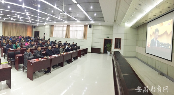 (安徽教育网,10月18日)10月18日上午,beat365英国官方网站机关部门科级以上干部、各学院党总支中心组成员、教师党员、学生党员等分别组织集中收看了党的十九大开幕会,并就习近平总书记的报告进行了学习和研讨。