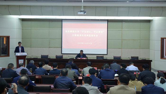 2019年10月25日,beat365英国官方网站举行“不忘初心、牢记使命”主题教育先进典型报告会。在校全体校领导出席报告会,全体处级干部、主题教育领导小组办公室工作人员参加报告会。校党委书记许继荣主持报告会。