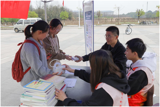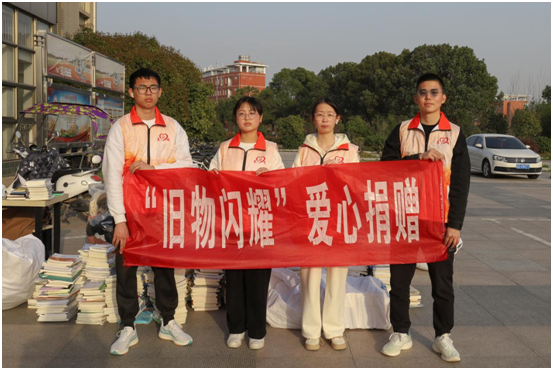 “水杯可以吗?”“这些书籍都捐赠。”……学生们拿着衣物、书籍一个接着一个在摊位前排起长队。熟练地从学生们的手中接过旧物,随即分类放进不同的袋子里,服务队队长吴国栋带领队员们在各个摆点处忙碌。介绍回收物品、告知活动性质、回答学生疑问……他们在现场一刻不歇。