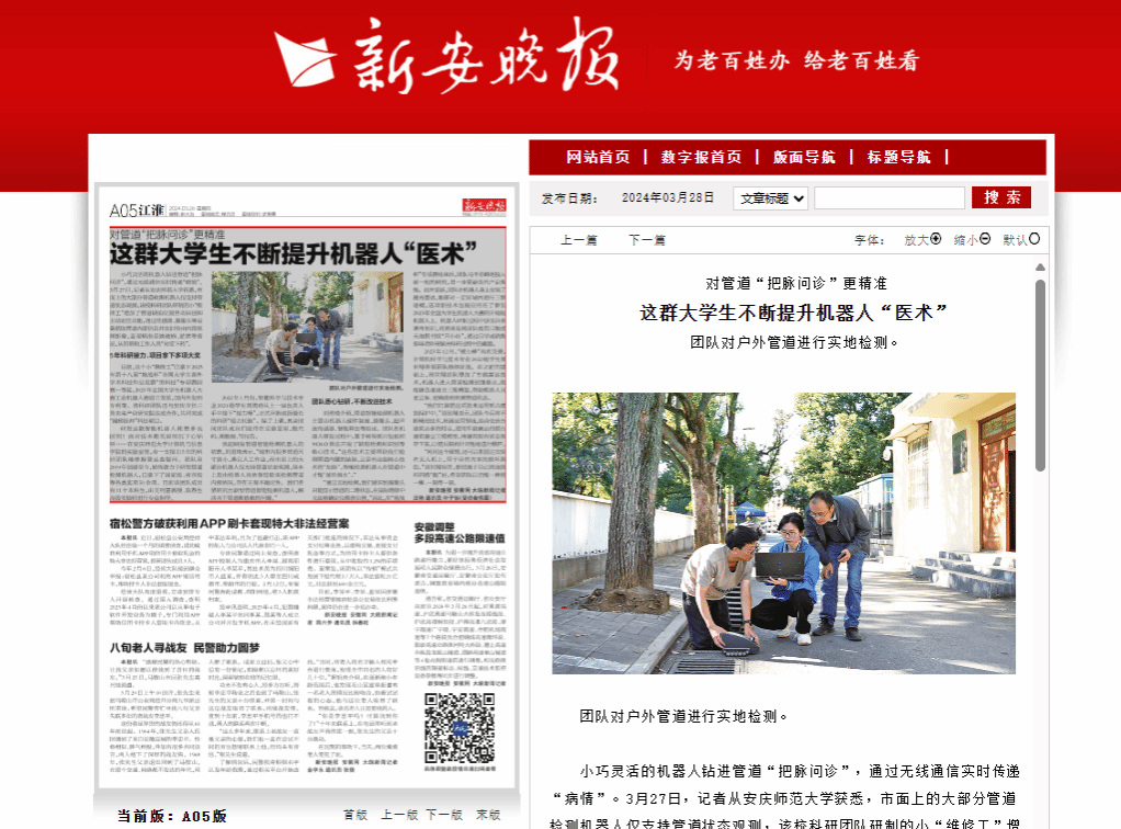 目前,这个小“维修工”已拿下2023年第十八届“挑战杯”全国大学生课外学术科技作品竞赛“黑科技”专项赛国赛一等奖,2023年全国大学生机器人大赛工业机器人赛道三等奖,国内外发明专利等。该科研团队还与安庆市长三角未来产业研究院达成合作,共同完成“揭榜挂帅”科技项目。