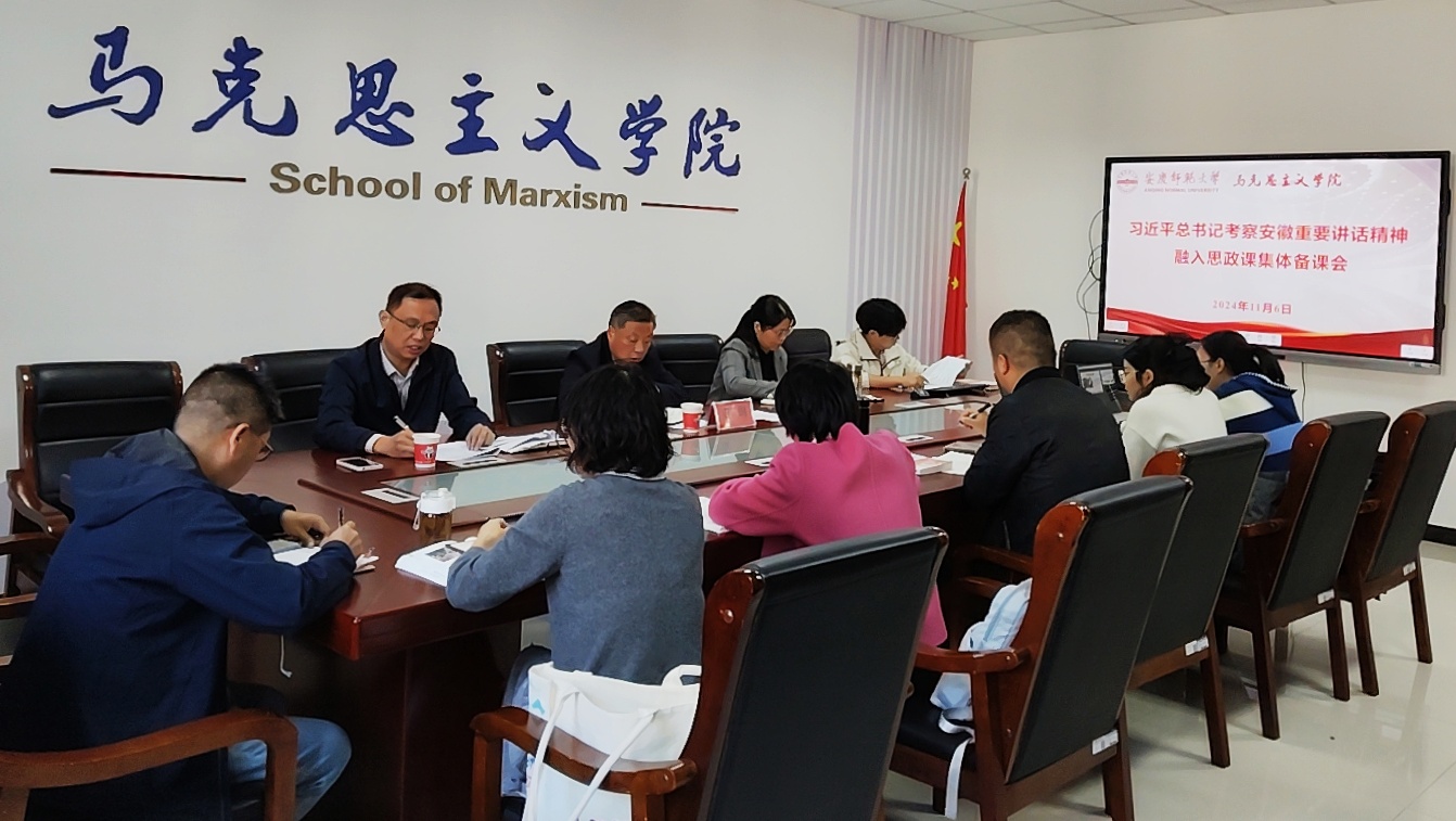 11月6日,beat365“习近平新时代中国特色社会主义思想概论”教研室和“思想道德与法治”教研室联合召开集体备课会。备课会以“深入学习贯彻习近平总书记考察安徽重要讲话精神,推动思政课建设内涵式发展”为主题。校党委常委、纪委书记秦朗出席备课会,马克思主义学院领导班子成员、教研室全体教师参加会议。