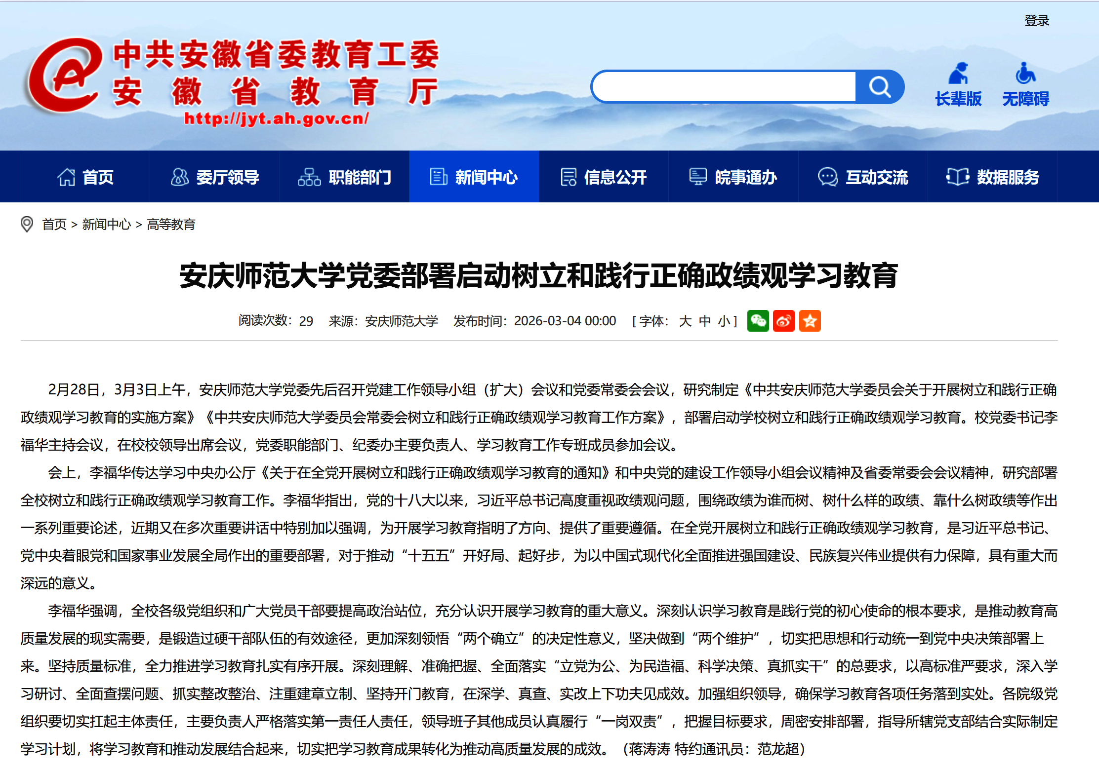 【安徽新闻网】beat365英国官方网站党委部署启动树立和践行正确政绩观学习教育https://jyt.ah.gov.cn/xwzx/gdjy/40782944.html